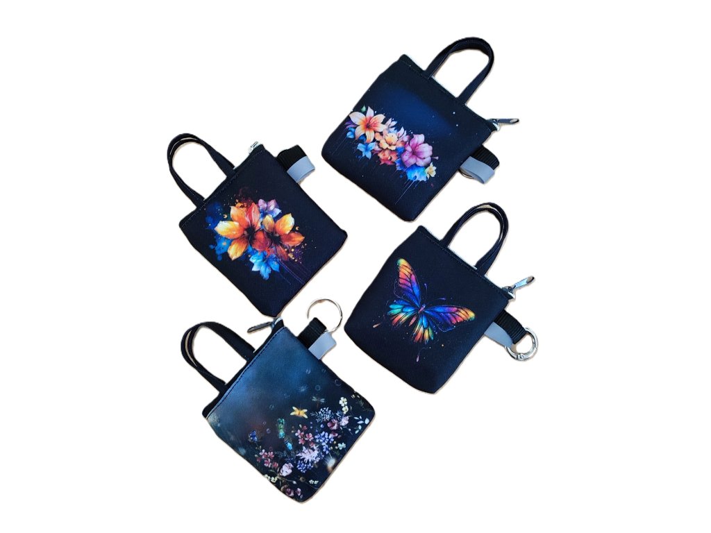 Klíčenka je ušitá z pevné kočárkoviny . Snadno udržitelná . Je dostatečně kompaktní aby se vešla pohodlně do kapsy nebo do tašky , ale zároveň aby se do jejího prostoru vešly klíče. Motýlek na přední i zadní straně klíčenky přidává jemný a elegantní akcent , který ji činí originální . Zajisté nadchne i svým vzhledem nákupní tašky. Z venčí je našitý kroužek na zavěšení a reflexní pruh. Uvnitř kroužek na klíče.