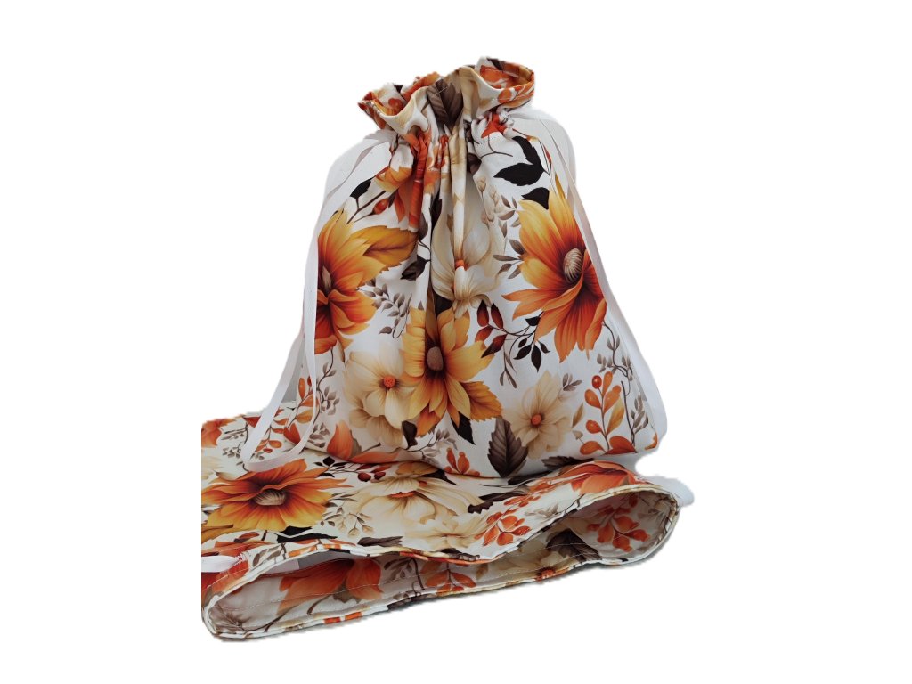 Bavlněný látkový pytlík se šňůrkami na zatažení - květinový vzor.
